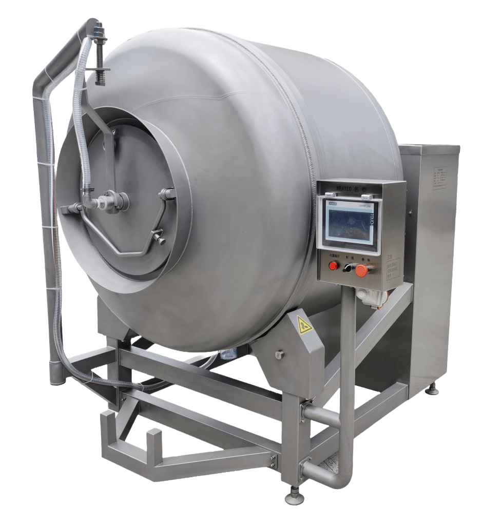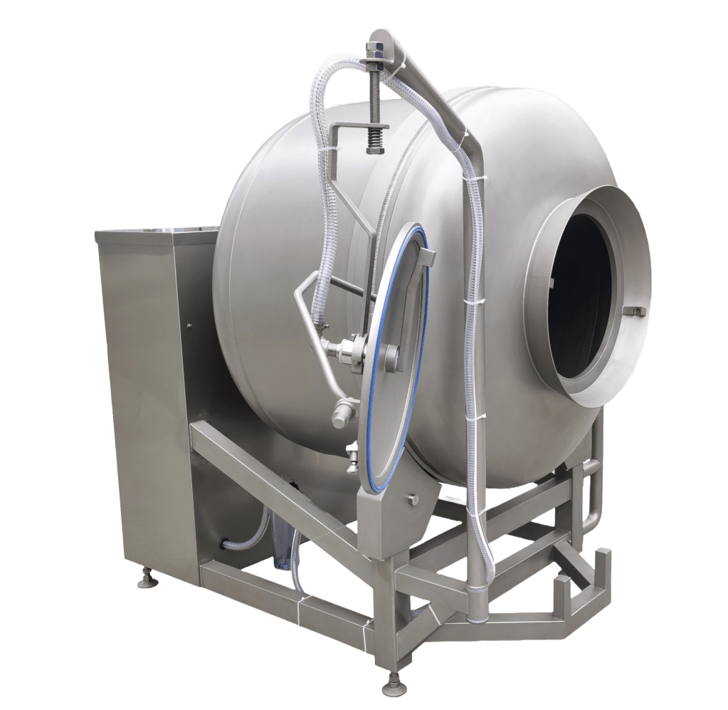 Vacuum tumblers tenderize the product and make it absorb salt or marinades better, resulting in improved appearance and consistent quality. They are easy to use, with programs to automate operating intervals to boost efficiency. They are widely used in meat, fish, and poultry processing.