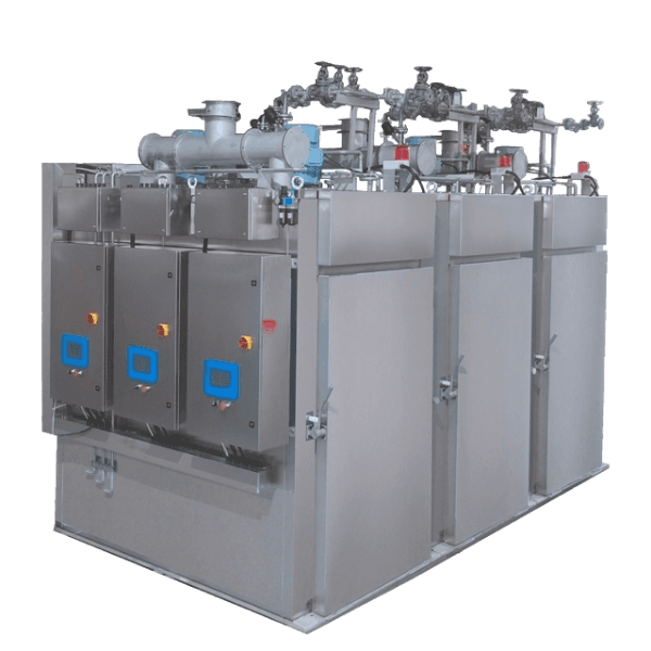 • Low-pressure steam cooking combined with high-pressure steam drying.