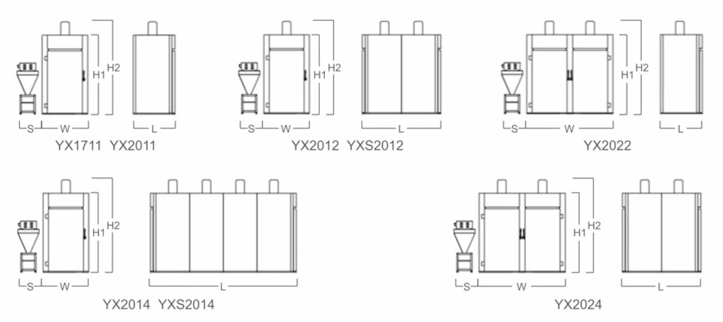 YXS Horizontal Air has alternating horizontal airflow through a reversing mechanism, making it suitable for products laid flat on trays or meshes during processing.