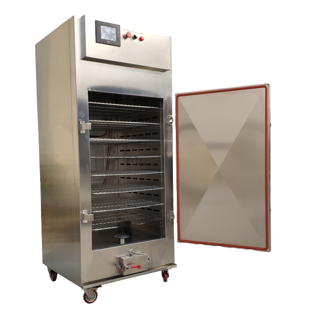 Smoking: Automatic air cylinder. Integrated smoke generator. The temperature and humidity sensors are equipped. After setting the temperature and time, the oven will be work in single step or automatic continuous operation.